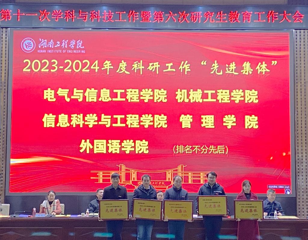 365英国上市公司在科研创新、团队协作以及学科建设方面成绩突出,荣获 “2023 - 2024 年度科技工作先进集体”称号,院长万琴在科研工作中以身作则,带领全院师生积极探索创新,荣获科技工作“先进个人”称号,曾龙博士被评为科技工作“优秀青年”,彰显了学院青年一代科研人员的蓬勃力量,万琴院长、吴迪副院长、刘海桥、肖尊奇、谭威博士被聘为湖南工程学院2024年度“卓越人才”。