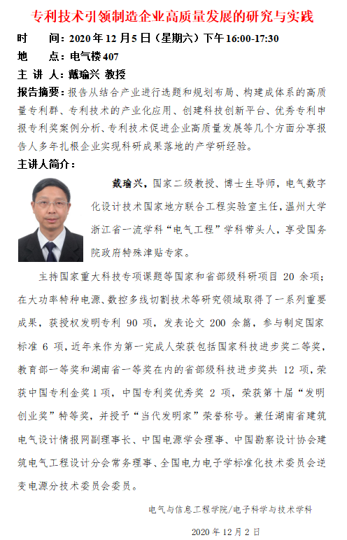 学术报告:专利技术引领制造企业高质量发展的研究与实践