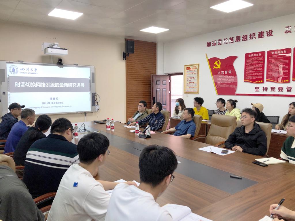 5月9日上午,四川大学“群体智能与控制”实验室负责人、博士生导师、教授杨鑫松应邀来校,在电气楼407会议室作《时滞切换网络系统的最新研究进展》的专题讲座。会议由党委委员、副校长罗毅平主持,365英国上市公司副院长林国汉及师生代表参加学习交流。