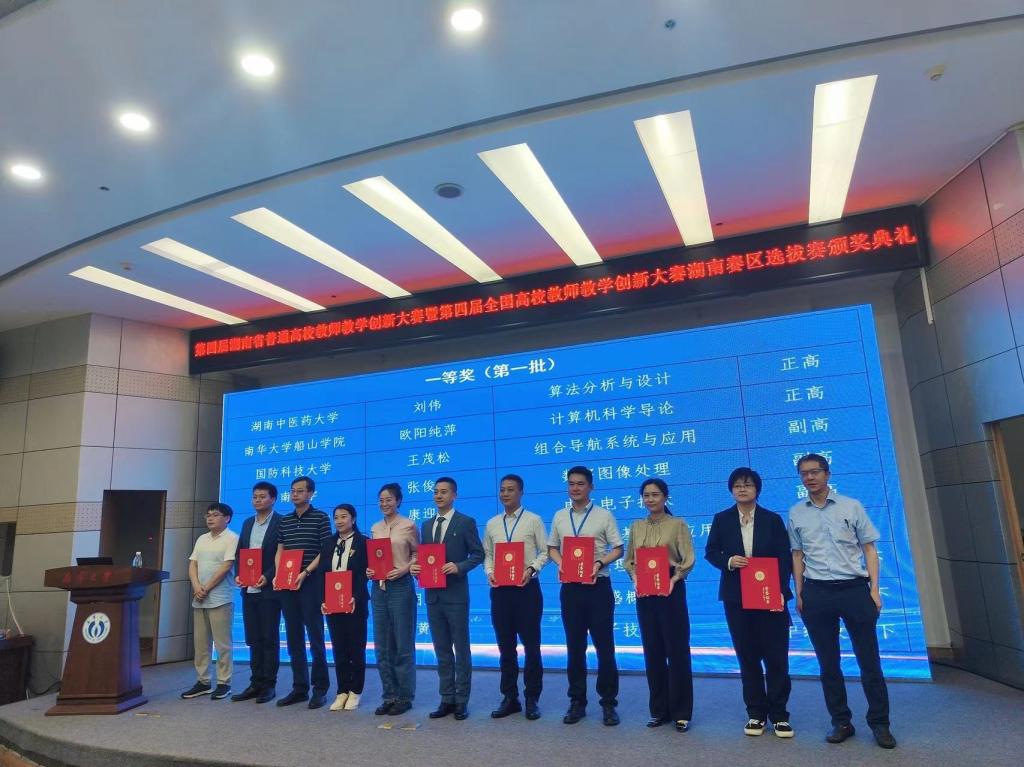 第四届湖南省普通高校教师教学创新大赛以“推进教学创新,培养一流人才”为主题,旨在推动信息技术与高等教育教学融合创新发展,打造高效教学改革的风向标,是经教育部批准,纳入《教育部直属单位三评一竞赛保留项目清单》的唯一1项高校教师教学竞赛。本次竞赛共有来自全省52所高校的270个教师团队作品参加省赛网络评审,108位教师个人(团队)入围现场决赛,最终评出一等奖43项、二等奖65项。