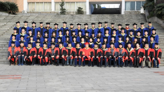 学位授予仪式上,易兵为获得硕士学位的研究生施拨穗礼,授予学位证书、毕业证书,并亲切地与每一名研究生合影留念。