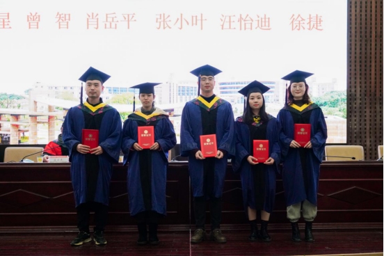 李小华宣读了2020届研究生校长奖和优秀硕士学位论文的表彰文件。卢张宇、姚月杰、吴波获2020届研究生校长奖,肖星、曾智、肖岳平、张小叶、汪怡迪、徐捷等人撰写的论文被评为2020届优秀硕士学位论文。会上,校领导为获奖者颁发证书。