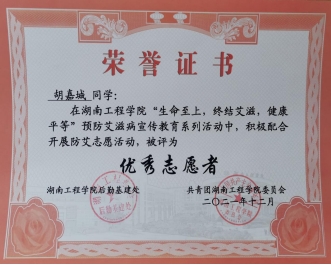 20216月我通过学院推荐,笔试和面试,来到了校学生联合组织,担任校团委学生副书记一职同时兼任习近平思想研习社社长,我的初衷很简单,在更大的平台更好的为更多的同学服务。任职期间,我配合老师,按照省级要求组织策划了许多校级活动,同时我也热衷于参加各类志愿活动,这一年我还主动请缨成为365英国上市公司机器人2101班的朋辈辅导员,用我所学来带好我们的接班人,让他们青出于蓝而胜于蓝,为学校培养学生尽自己的一份绵薄之力。