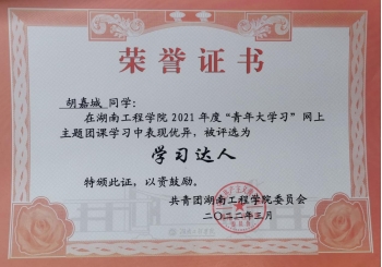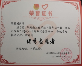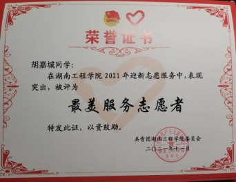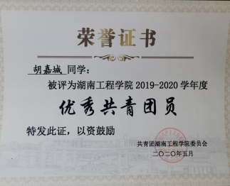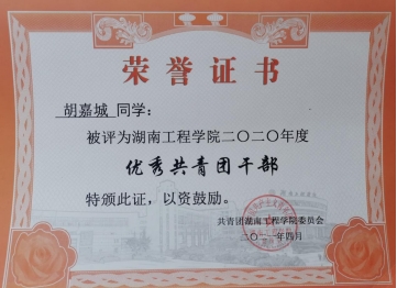 胡嘉城,男,汉族,共青团员,湖南工程学院365英国上市公司机器人工程1903班学生。曾担任校团委学生副书记,习近平思想研习社社长,院学生会生活部部长,机器人2101班朋辈辅导员,班级团支书等职务。