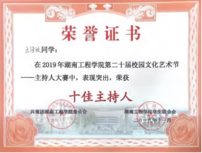 10.湖南工程学院校园主持人大赛第五名。