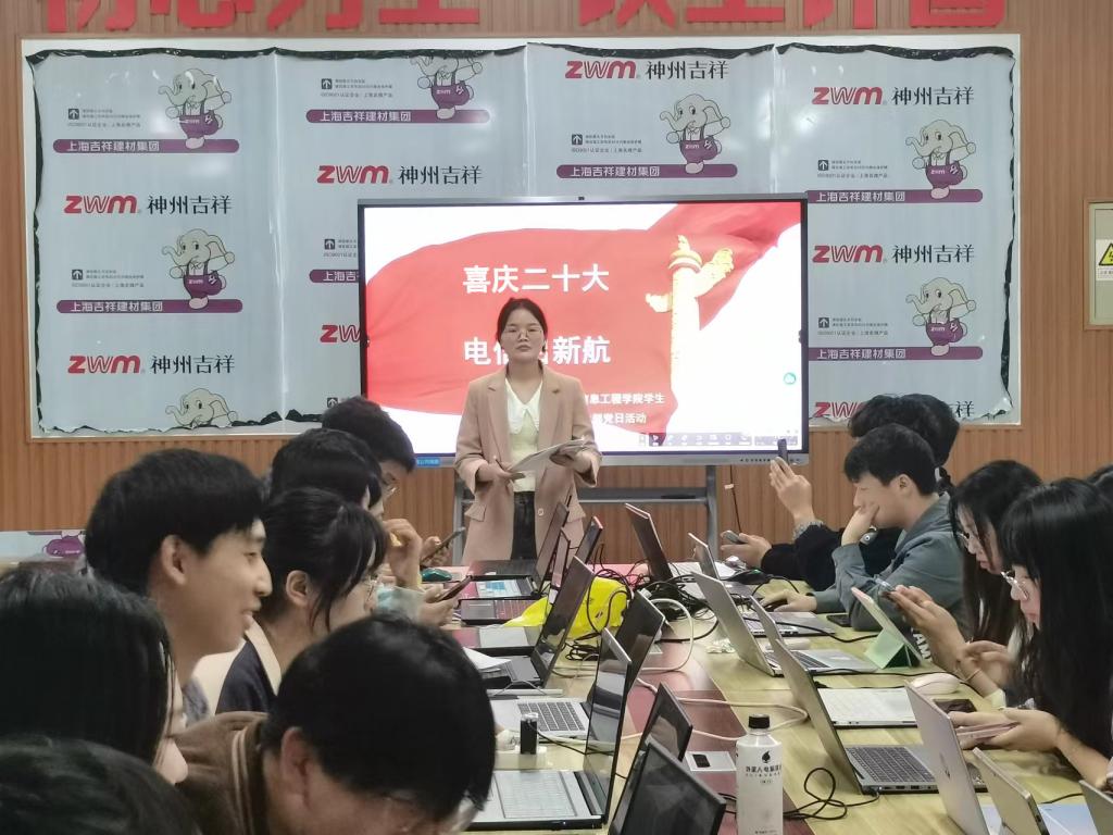 11月5日晚上,365英国上市公司学生党支部在电气楼115举行“喜庆二十大·电信启新航”主题党日活动,共同学习党的二十大精神,以实际行动响应党的二十大胜利召开。支部书记屈佩斯主持会议并传达习近平总书记在党的二十大报告中关于青年的重要指示精神,引领学生党员加深对于自身专业的认知,党支部全体党员参加学习。