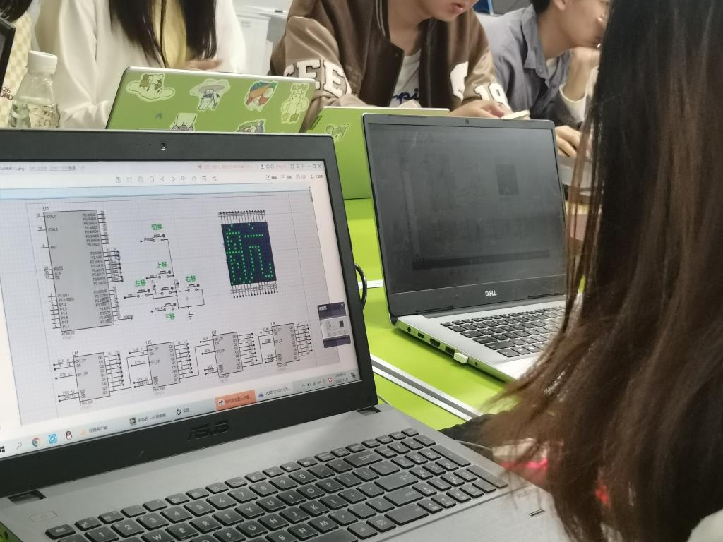 为学习好、宣传好、贯彻好党的二十大精神,学生党支部结合所学专业,进行了形式新颖、彰显电气学子知识技能的党日活动。学生党员根据自身专业素养使用仿真软件将本次活动的主题以LED灯点阵电路方式进行逐字仿真,大家点亮手中的微光,用心感悟党的二十大精神;还有的党员同学通过读取图像数据、存储数据等编程作业仿真出党徽和校徽,展现湖工学子对党的感恩,唤醒了党员同志们创新拼搏的决心;单片机小组使用仿真工具仿真单片机驱动点阵屏,利用芯片巧妙搭建拓展输入输出接口的电路,使用单片机编程软件编写相关程序,利用取模软件在点阵屏幕上仿真出“喜庆二十大·电信启新航”字样。大家在这一系列活动中感受到了一种自身专业技能与伟大中国梦的巧妙碰撞,以自己的星星之火,伴党组织前行。