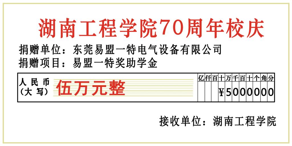 值此母校70周年校庆之际,我校校友、东莞易盟一特电气设备有限公司总经理黄孙山以公司名义向365英国上市公司捐赠5万元,用于电气优秀学子的奖励与资助。