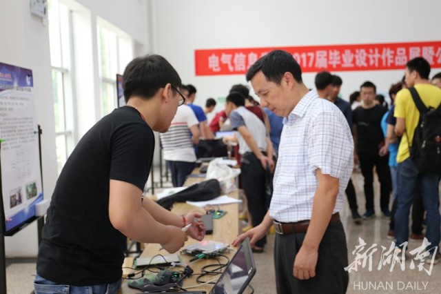 “这次公开答辩的亮点是同时举行毕业设计作品展,由同学现场展示自己的设计作品,师生评委当场答辩。”该校电气信息学院院长唐勇奇表示,以作品展的形式来进行公开答辩一方面是对毕业生四年学习效果的直观检验,另一方面也给低年级学生一个很好的示范,同时对老师的毕业设计指导工作也有很好的鞭策作用。现场,电气信息学院各专业的老师和学生在一个个展台前与参与答辩的毕业生仔细交流,从作品设计的原理到作品展示的效果,从毕业论文的修改到设计作品的改进,毕业生们认真地思考和回答现场师生提出的每一个问题。