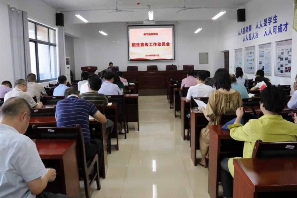 为有效做好2019年电气信息学院招生宣传服务工作,全面提升生源质量,6月11日下午,我院在电气楼408会议室召开2019年电气信息学院教职工招生宣传工作动员大会。会议围绕招生工作开展方案和相关工作进行了讨论和安排。会议由书记岑蓉主持,全院教职工参加会议。