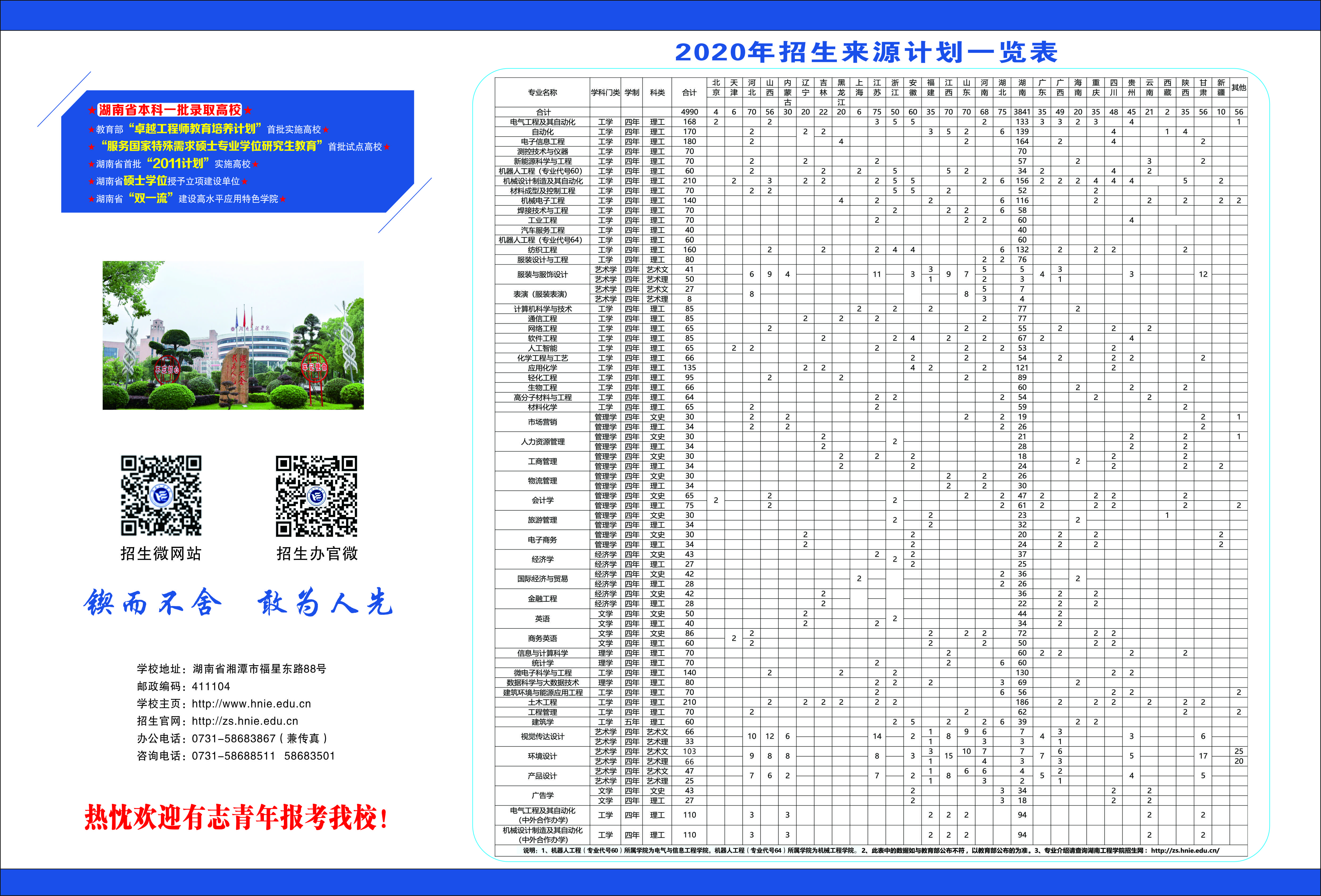 湖南工程学院2020年招生简章