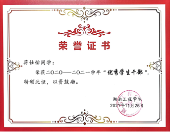 2020-2021学年校优秀学生干部