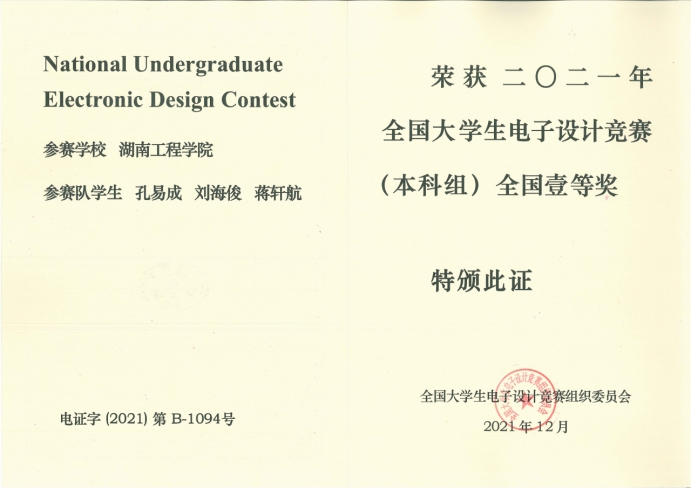 2021湖南省大学生电子设计大赛省级一等奖