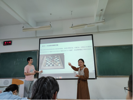 本次课授课内容为“纹理分析”,课堂引入了BOPPPS教学方法:①课程引入。在开始上课时,李婷老师展示了常见的纹理图片、纹理合成的案例进行导入,简洁、生动的图片吸引学生的注意力,引发学生的好奇心及学习兴趣,将本次课的内容和学生的已有知识或者未来可能碰到的问题有效衔接起来。②学习目标。通过思维导图的方式让学生明晰本节课的学习目标,便于学生掌握学习的重点。③课前摸底。采用问答方式进行课前摸底掌握学生的受训能力,了解学生对本课题的兴趣及先备知识。④参与式学习。在讲清概念、重点、难点等主要知识点后,通过分组讨论、案例分析的方式让学生参与课堂,充分激发学生的学习热情,引导学生积极参与到学习活动中来,进一步加深学生对所学内容的理解程度,同时也强化了学生的语言表达能力、沟通能力及合作能力等素养的培养。⑤课后测验。在教学过程中及时评估教学效果,通过回答问题、操作演示的方式对教学效果进行评估,并根据评估结果进行教学反思,及时调整教学设计,从而更好地达成教学目标。⑥总结。让多个学生进行总结补充,然后教师再强调重点、难点。
