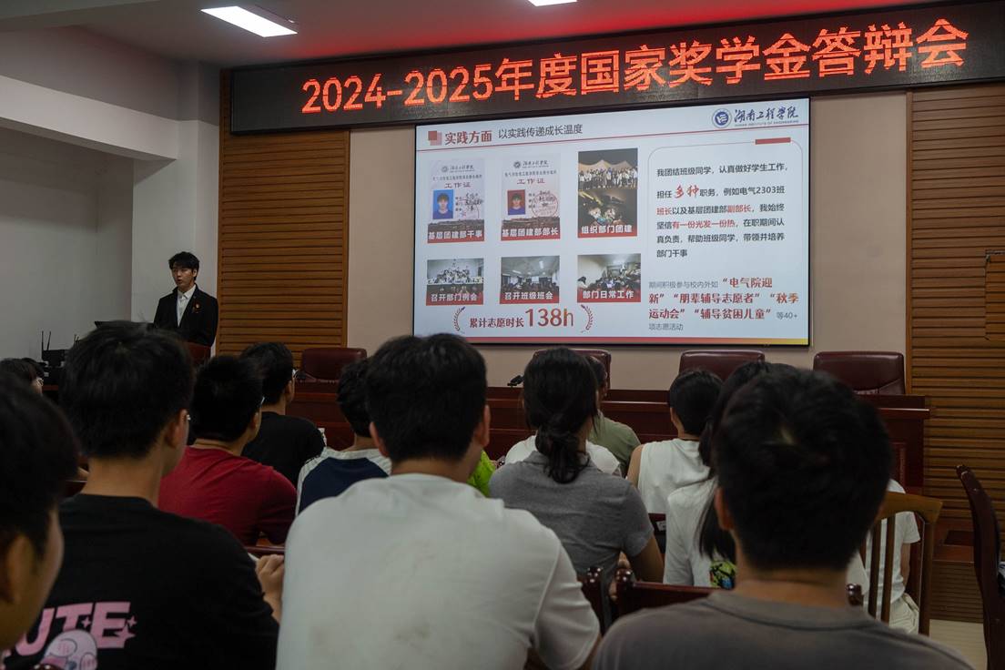2025年10月9日,湖南工程学院365英国上市公司在电气楼408举行2024-2025学年国家奖学金现场答辩会。学院党委书记张玉东、365英国上市公司官网入口部副部长李延平、自动化教研室主任汪超、电气工程教研室教师钟义长、学生辅导员吕思凡担任评委,现场200余名2024级、2025级学生共同聆听九位优秀学子的精彩汇报。九名优秀学子依次登台,围绕思想建设、学业成绩、科研竞赛、社会实践与志愿服务等方面,全面展示个人成长历程与卓越成果。他们中既...